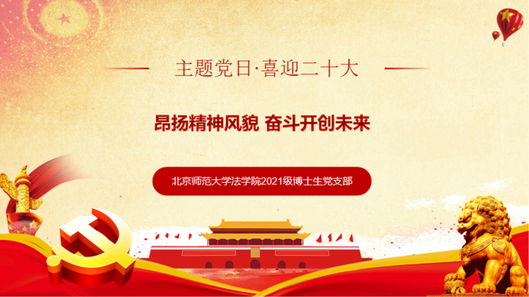 2021级博士生党支部于2022年10月17日19点,在线上开展“喜迎二十大,永远跟党走”主题宣传教育活动,活动内容包括学习二十大报告,分享开幕式观看心得。活动由党支部书记侯撼岳主持,宣传委员杜放记录,活动共有23名党支部成员线上参与。