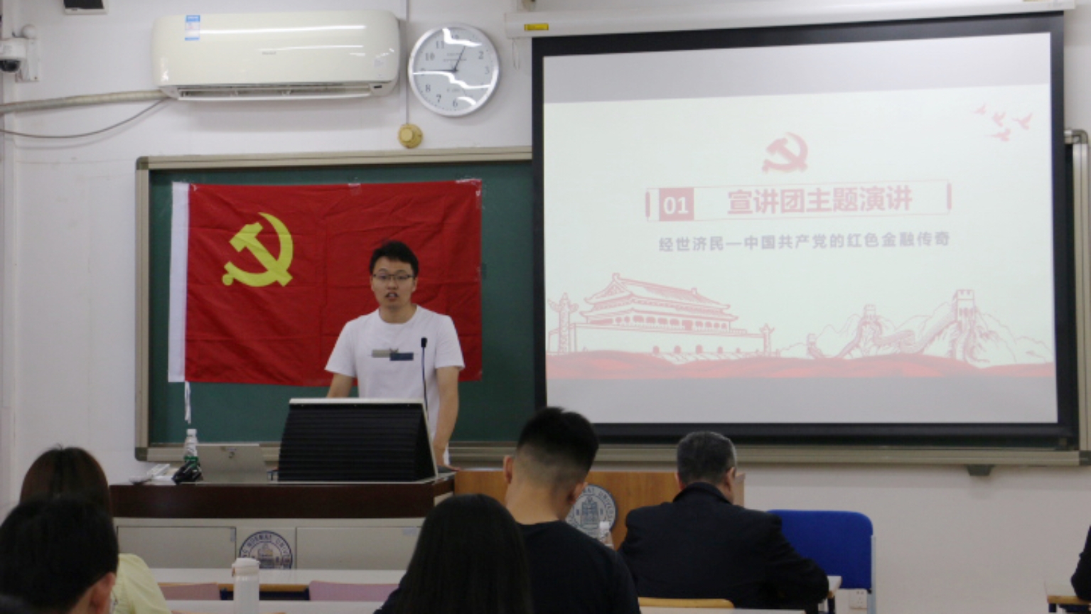 6月4日上午,素人AV 2019级法律硕士第一党支部召开党员大会暨“学百年党史,做时代新人”主题党史学习活动。马克思主义学院求索学社宣讲团的罗紫琪同学为大家带来了“经世济民——中国共产党红色金融传奇”主题讲座。校党委副书记李晓兵、党支部全体党员和发展对象参加会议,会议由党支部书记高艺璇主持。