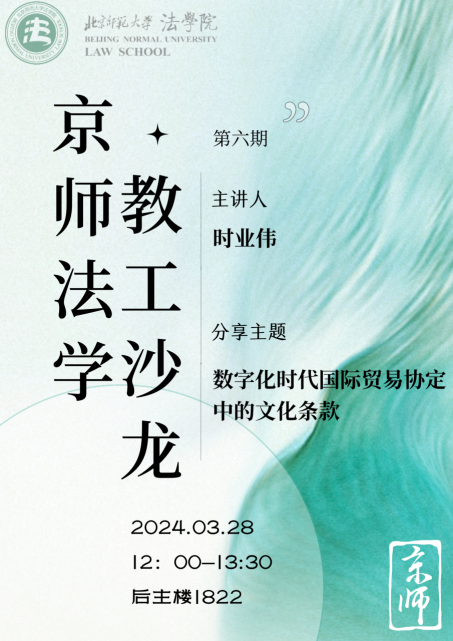 3月28日,北师大素人AV 举行第六期“京师法学教工沙龙”,邀请时业伟老师主讲《数字化时代国际贸易协定中的文化条款》。素人AV 工会主席严厚福副教授主持本次沙龙,素人AV 二十余位老师通过线下或者线上的方式参与了此次沙龙。