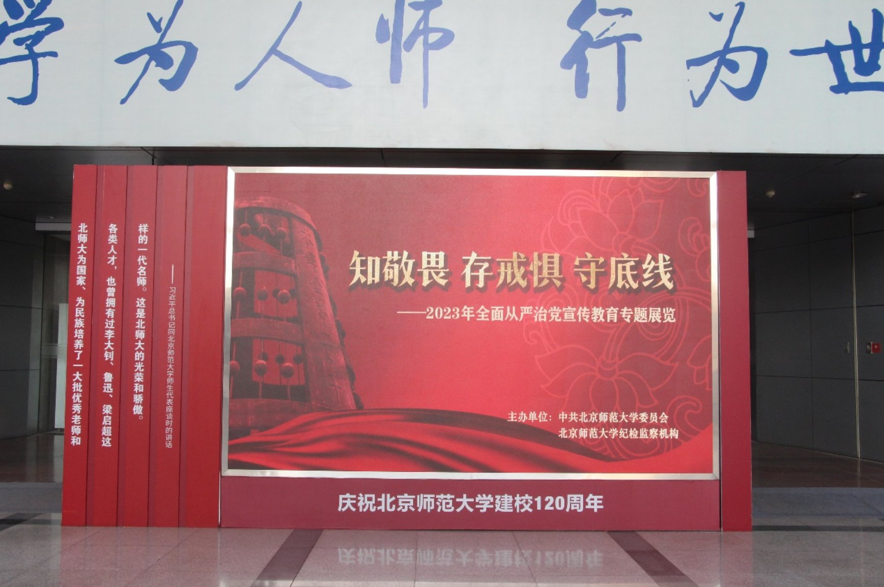 本次展览包括党的纪律概述、党的纪律处分工作、高校系统党员干部和教职员工违纪违法典型案例三部分。以案为鉴、警钟长鸣。全面从严治党宣传教育是每一位共产党员的终身课题,其核心目标就是锤炼党员干部的政治品格,使党员干部坚定对马克思主义的信仰、对中国特色社会主义制度的信念,增强“四个意识”,坚定“四个自信”,做到“两个维护”,自觉在思想上政治上行动上同以习近平同志为核心的党中央保持高度一致。