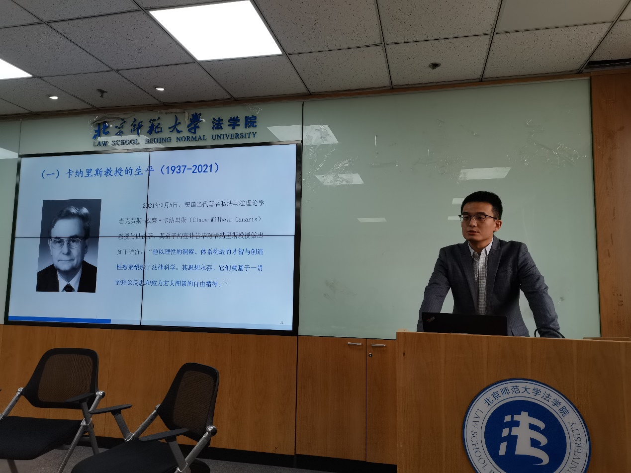 10月12日,北师大素人AV 举行本学期第二期“京师法学教工沙龙”。本次沙龙的主题是针对《法律漏洞的确定:法官在法律外续造法之前提与界限的方法论研究(第2版)》的新书品评,素人AV 杨旭老师主讲《法律与法的评价互动:卡纳里斯的法律漏洞确定理论评述》。素人AV 工会主席严厚福副教授主持本次沙龙。