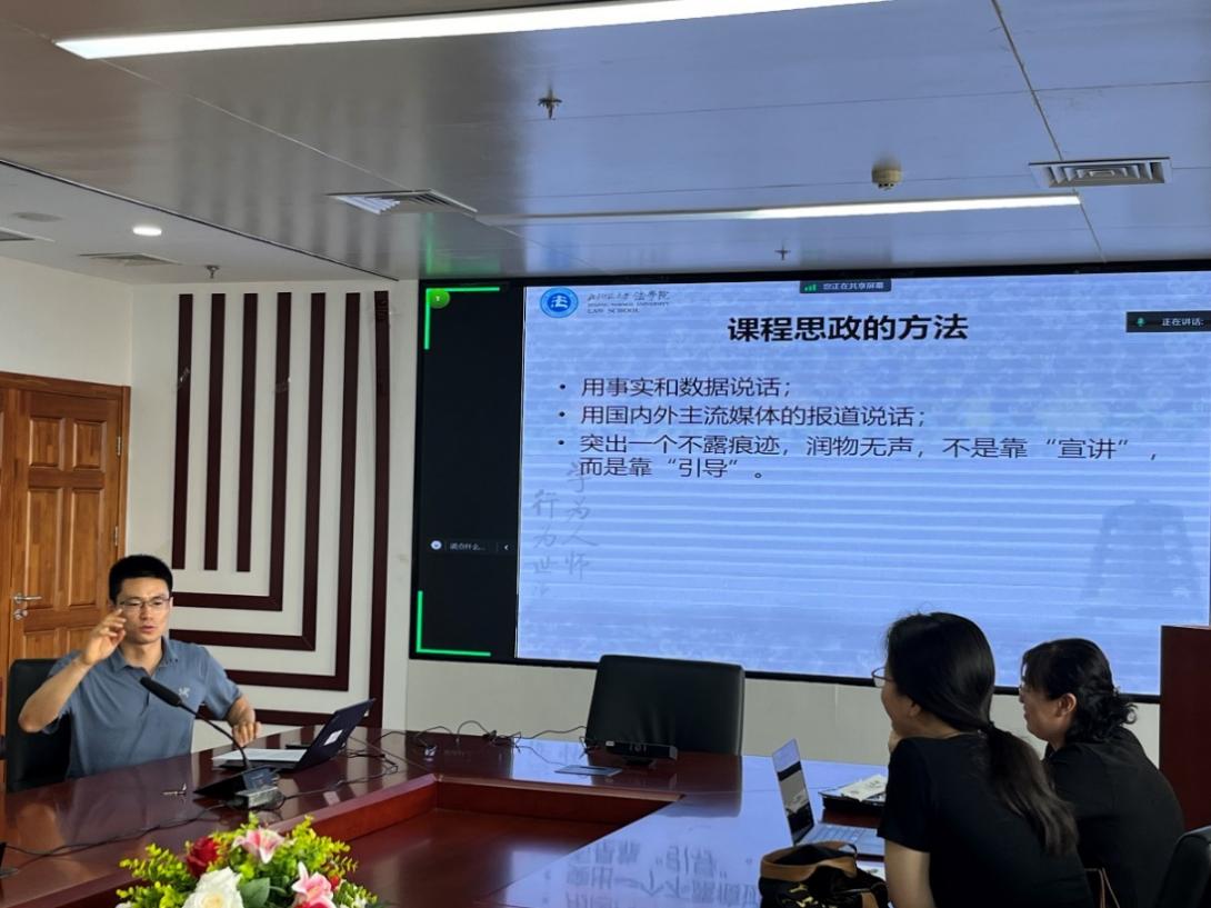 紧接着,严厚福老师以环境保护法学课程为例介绍了课程思政的方法,强调课程思政不是靠“宣讲”,而是靠“引导”。在教学过程中,要用事实、数据和案例说话、用境内外主流媒体的报道说话,并通过鼓励学生实地参观环保设施、参与课堂研讨和模拟听证会等方式来培养学生科学、理性和法治的思维方式。