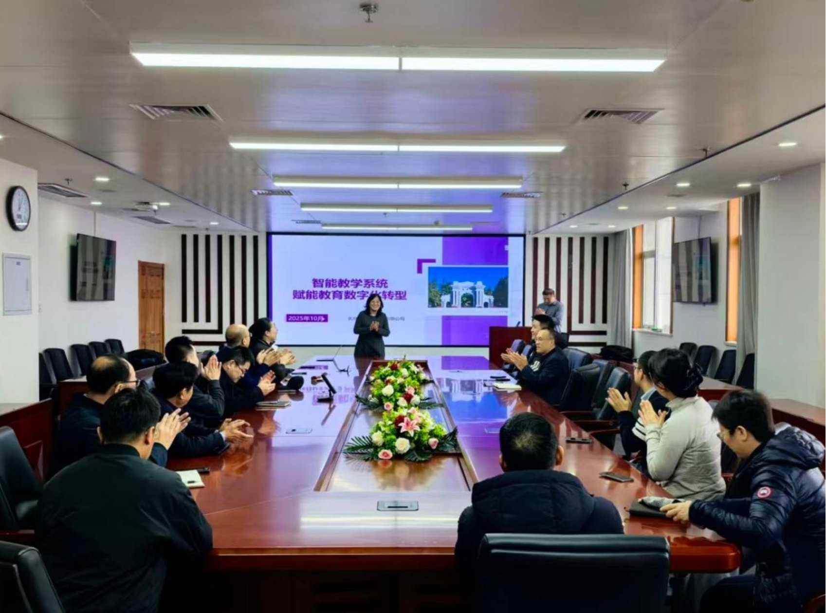 合伙人武爱敏详细介绍了公司在人工智能应用平台建设、智能化教学环境构建与运维三大板块的最新进展及典型案例。在AI应用平台方面,公司自主研发的系统已与清华大学外文学院、北京大学战略研究所等顶尖高校达成深度合作,通过个性化学习路径规划与深度数据分析功能,有效缩短学生学习周期,显著提升科研工作效率,为英语教学优化与战略研究升级提供了强力技术支撑。在教学环境建设与运维领域,清北智源已成功携手清华大学、北京大学、国家会计学院、首都师范大学、北京信息科技大学等多所院校,完成多媒体教室、报告厅、会议室及各类学习活动空间的信息化、智能化改造,并提供持续运维服务,为师生打造了高效便捷、智能适配的教学与学术交流环境。