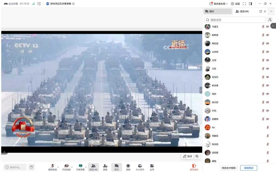 教师第四支部的李迪老师表示,作为国际法学者,我从这场阅兵中看到了一个负责任大国对正义的坚守、对和平的承诺以及对国际秩序的维护。中国的抗战精神,正是国际社会中的“侠义”精神——为国家生存而战、为民族复兴而战、为人类正义而战。从抗战精神到国际担当,中国始终站在历史正确的一边、站在人类进步的方向上。中国的发展壮大就是世界和平力量的发展壮大。