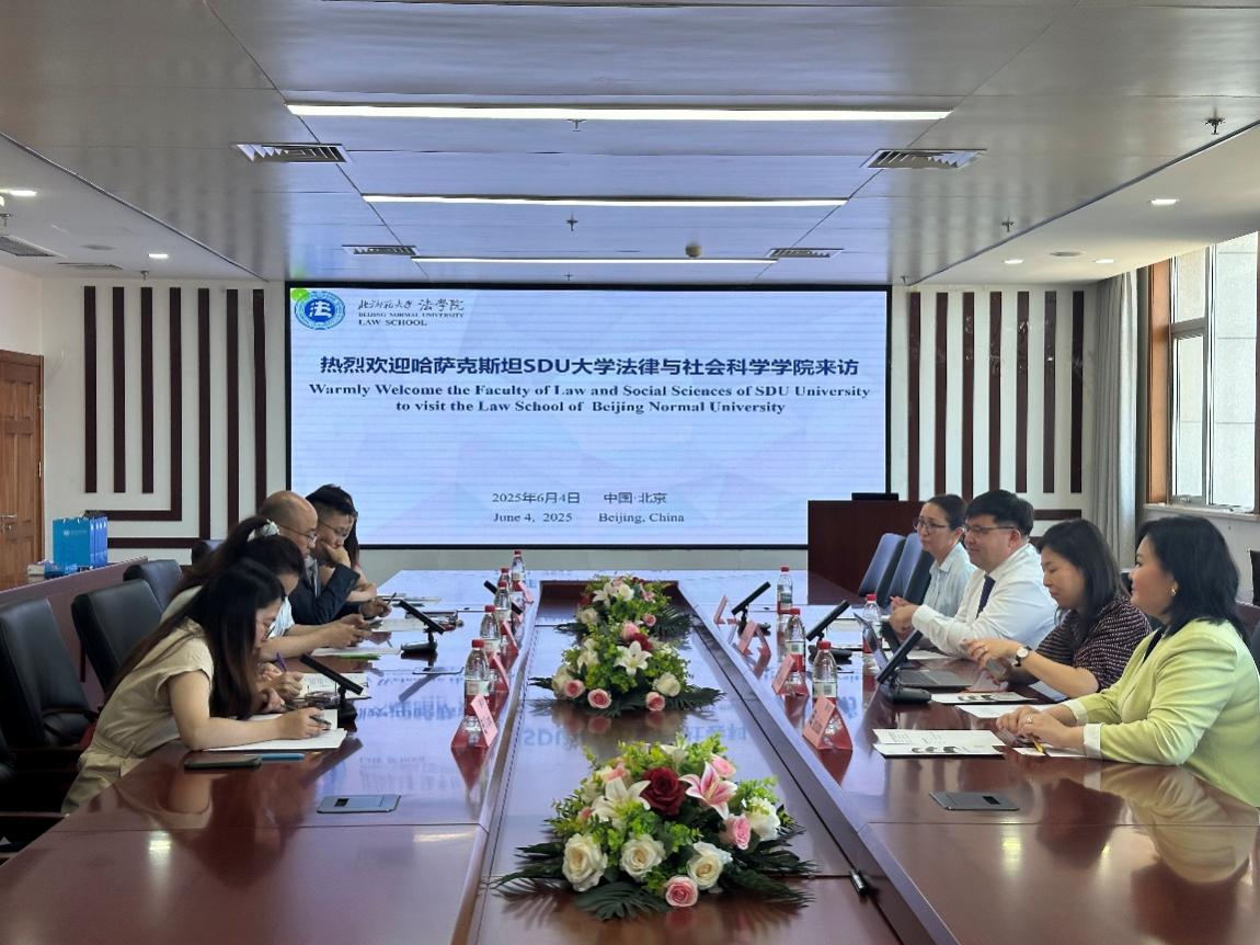 北师大素人AV 院长梁迎修教授首先对Madiyar Saudbayev院长一行的来访表示了热烈的欢迎,并对素人AV 的办学历史、学科建设、师资队伍、人才培养情况等作了简要介绍。梁迎修院长表示,学院高度重视与中亚地区的合作交流,哈萨克斯坦作为“一带一路”沿线的重要国家,期望通过开设双学位项目等形式共同培养法律人才,通过与SDU大学的合作进一步加强与哈萨克斯坦法律实务界的交流,推动带路沿线地区的共同发展。