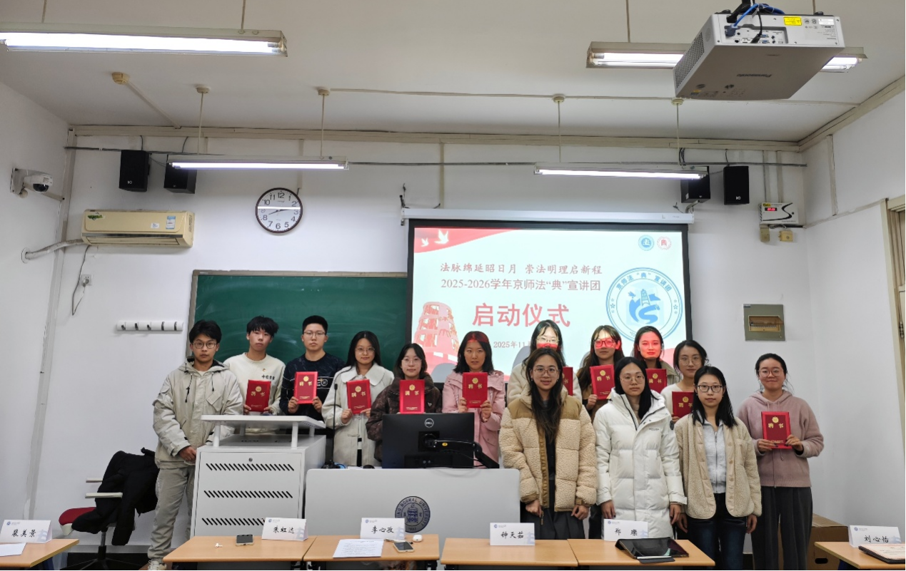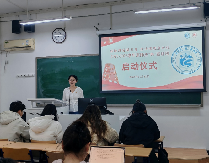 京师法“典”宣讲团在总团的指导、素人AV 团委的领导下,已经走过四个春秋,本学年将以崭新的风貌重新启程。为更好地发挥宣讲团效能,11月12日晚20时,2025-2026学年京师法“典”宣讲团启动仪式在教四213启动。