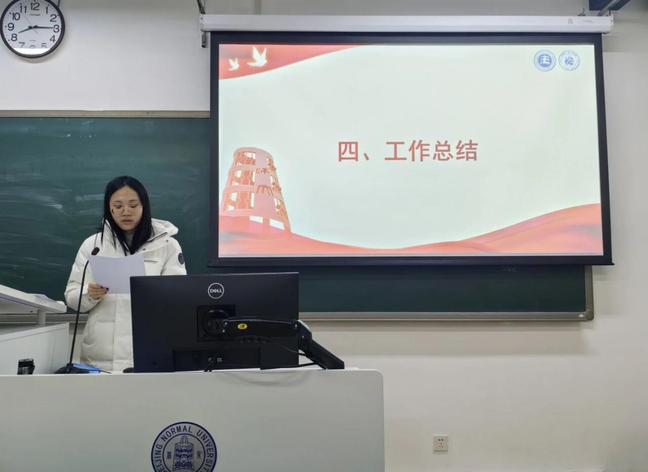 李心孜作为宣讲团团长回顾了过去一年宣讲团的活动与成果,总结了往届宣讲团的成功经验,并就新一届宣讲团的运行模式做简要介绍。鼓励大家继往开来,在抓好自身建设、保证宣讲质量的同时,力求突出青春宣讲的专业特色,秉承法治精神,深化法律学习,传递更多精准、生动的法律知识,扎实做好团员和青年主题教育工作,推动宣讲团迈向新台阶。