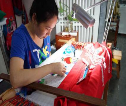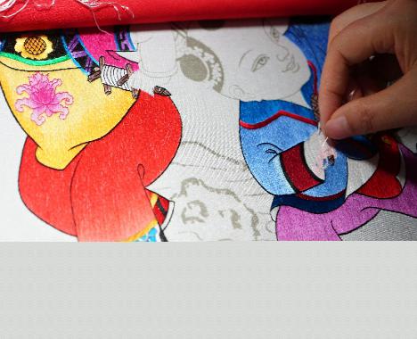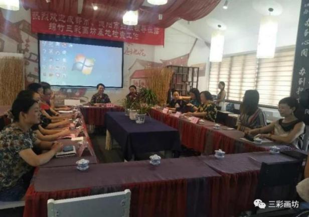 三彩画坊无论是在经营模式上还是艺术创作上,都与时俱进,不断推陈出新。画坊长期举办各种教育和交流活动,覆盖人群广泛,有周边村子的居民,有国内外学校师生,还有政府官员。让他们能够亲身体验年画制作、感受年画主题旅游的魅力。通过这些多样的形式让更多的人了解和喜爱上了绵竹年画。同时在艺术形式上,三彩画坊的艺术家们充分发挥了自己的想象力与创造力,独创将年画与蜀绣、彝绣相融合的形式,将优秀的传统文化推陈出新。