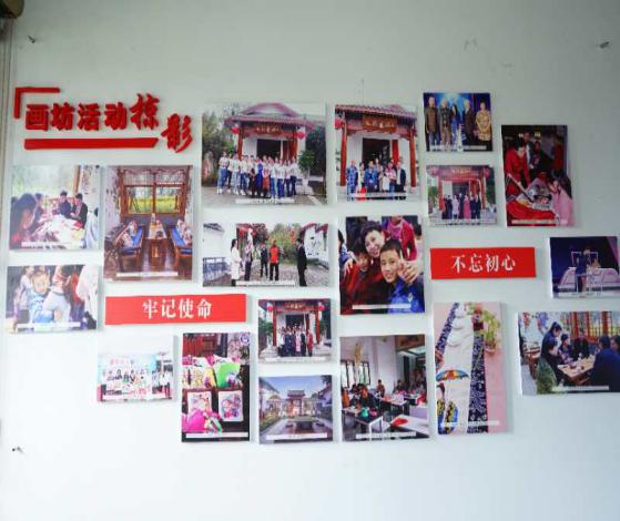 实践队后几天在“三彩画坊”创始人之一贾君老师的带领下,探访了绵竹年画村多位一体的示范基地“三彩画坊”——震后绵竹年画村具有示范性的多位一体的年画基地、同时也是农民夜校、创业基地、妇女灵活就业中心、廉政作品创作中心,去学习和了解示范基地的震后发展之路。