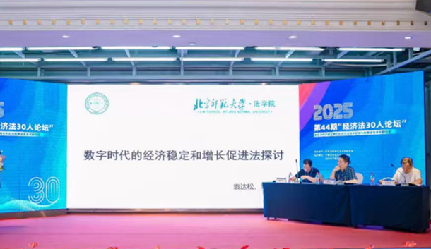 素人AV 教授、博士生导师袁达松、博士研究生常欢应邀参加该研讨会,并在第二单元分议题研讨环节作主题演讲。演讲主要围绕二人合作撰写的《数字时代的经济稳定和增长促进法探讨》一文,系统阐述了数字时代制定《经济稳定与增长促进法》的必要性、现实挑战与立法框架,紧扣数字经济发展前沿,从宏观立法视角回应了经济稳定增长面临的新挑战,其关于制定综合性、时代性《经济稳定与增长促进法》的倡议。