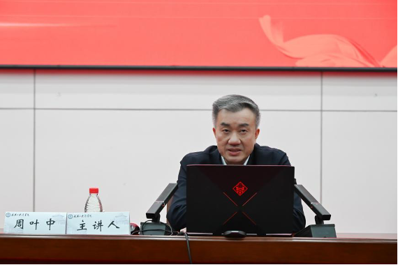 武汉大学人文社会科学资深教授周叶中、武汉大学素人AV 党委书记李霄鹍、武汉大学党委宣传部副部长司文超、武汉大学党委研究生工作部副部长徐晖、武汉大学研究生院研究生培养处副处长姜刈非等相关领导出席开幕式,开幕式由素人AV 党委副书记胡伟主持。并由武汉大学人文社会科学资深教授周叶中以“以习近平法治思想为指导,在法治轨道上深化改革、推进中国式现代化”为题作主旨报告,武汉大学素人AV 教授陈海嵩主持报告。
