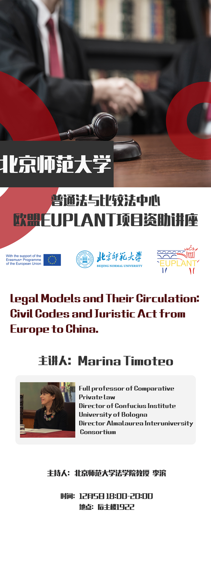 【12.05】普通法与比较法中心 | 欧盟EUPLANT项目资助讲座/主讲人:Marina Timoteo