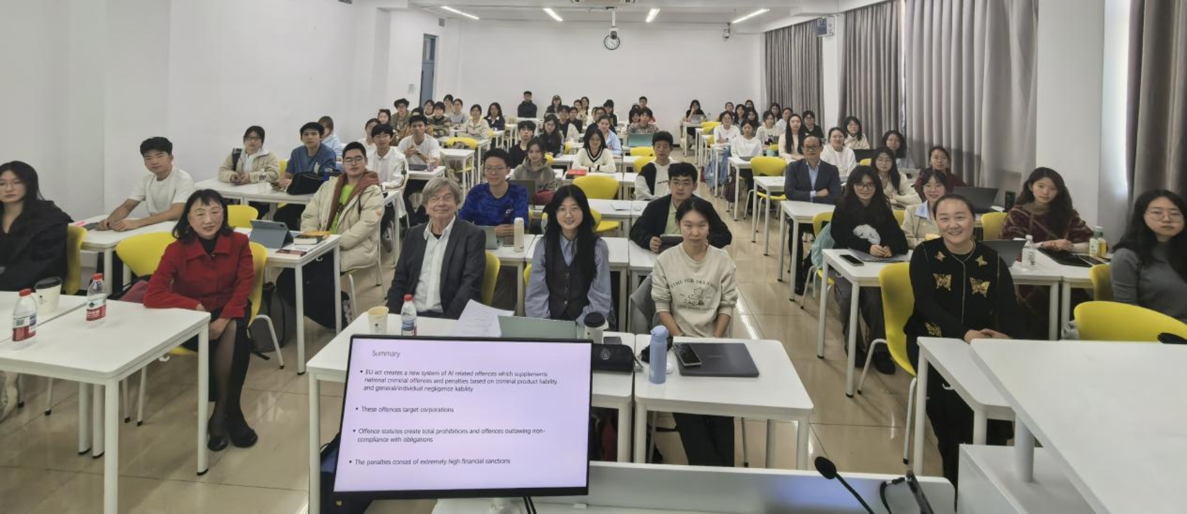 在本次课程中,Albrecht教授重点介绍了《欧盟人工智能法案》这一当今首部全面规制人工智能的法律文件。该法案建立基于风险的分级监管体系,对人工智能系统按风险程度分为“不可接受”“高风险”“有限风险”与“最小风险”四类,并对高风险系统提出严格的法律与合规要求,包括风险评估、透明度义务及市场监督机制等。在责任层面,欧盟以企业为主要责任主体,辅以高额行政罚款以及欧盟成员国在各自刑法中具体刑事责任化制度,形成了“欧盟统一监管与成员国责任衔接”的双层框架。Albrecht教授指出,《欧盟人工智能法案》标志着人工智能法律治理进入制度化阶段,其创新性监管模式对刑法体系的适应性提出了新挑战,但却为各国探索科技与法治的平衡提供了重要启示。