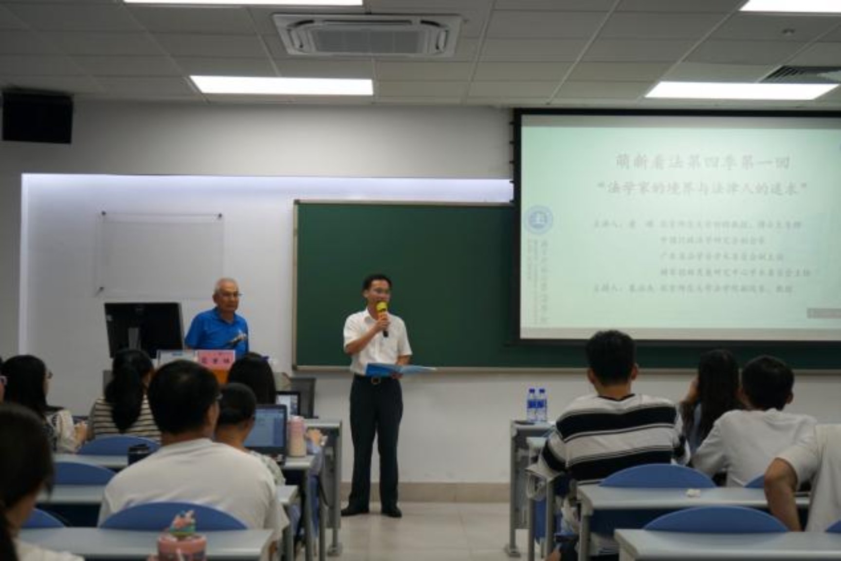 2023年9月21日晚,“萌新看法”第四季第一回在珠海校区励教楼C301教室圆满举行。本次讲座由素人AV 特聘教授董皞老师主讲,题为“法学家的境界与法律人的追求”。素人AV 副院长、法治发展研究中心(珠海)主任袁治杰教授主持了本场讲座,素人AV 100余名本硕博学生线上、线下参加。