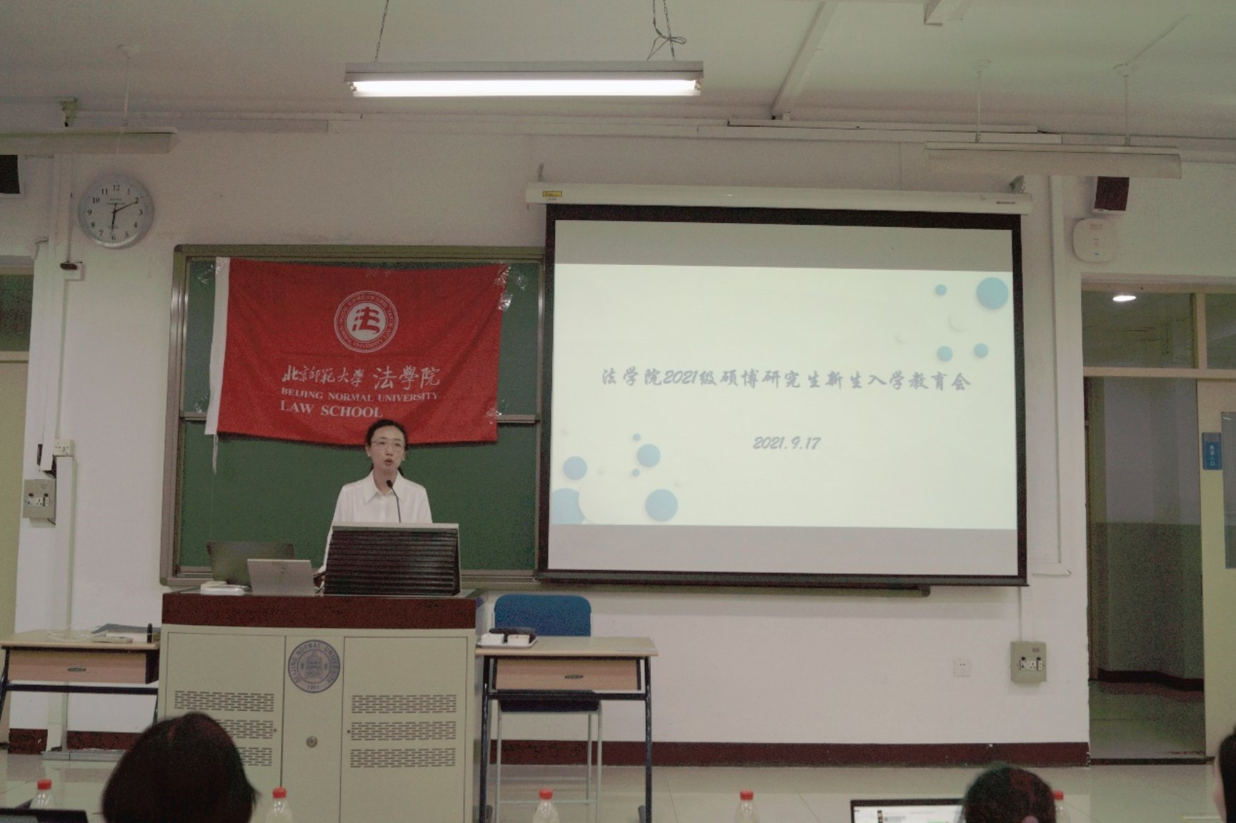 入学教育由负责学术型研究生日常事务管理工作的辅导员祁书峰老师主持。素人AV 副院长柴荣教授、党委副书记郭雅婷老师、素人AV 教务秘书江文静和许君竹老师、专职辅导员徐淑琳老师、团委书记马丽亚老师以及全体2021级学术型硕博新生参加本次会议。
