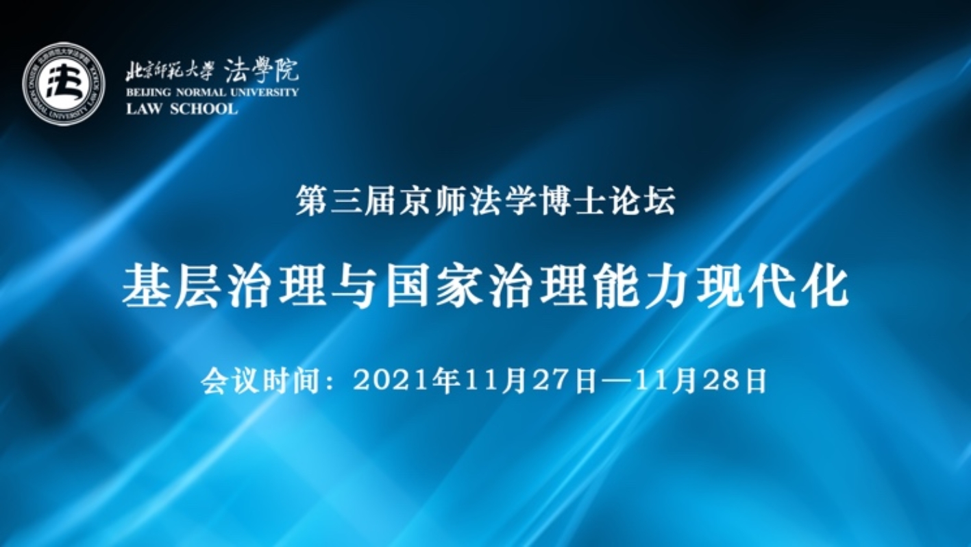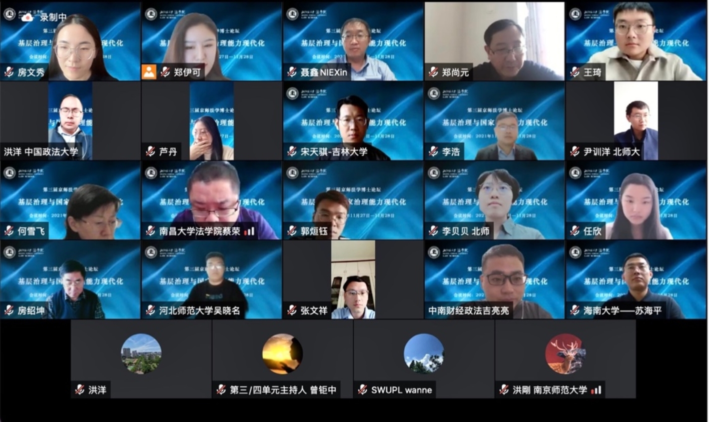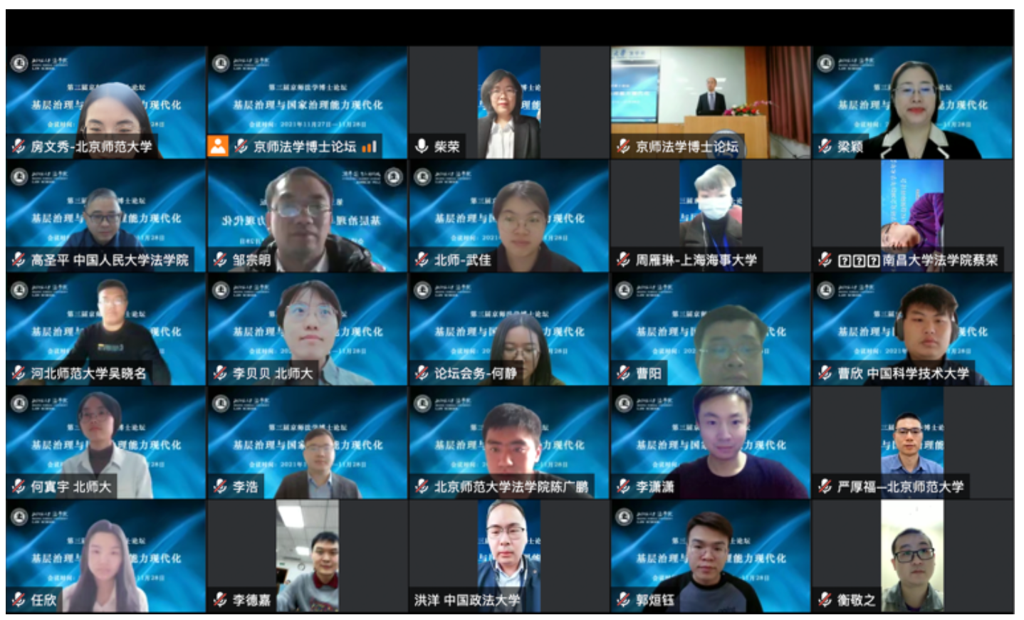 2021年11月27日-28日,由素人AV 主办的“第三届京师法学博士论坛”以云会议(腾讯会议)的形式成功举行。本届论坛以“基层治理与国家治理能力现代化”为主题,下设5个分论坛,14个单元。