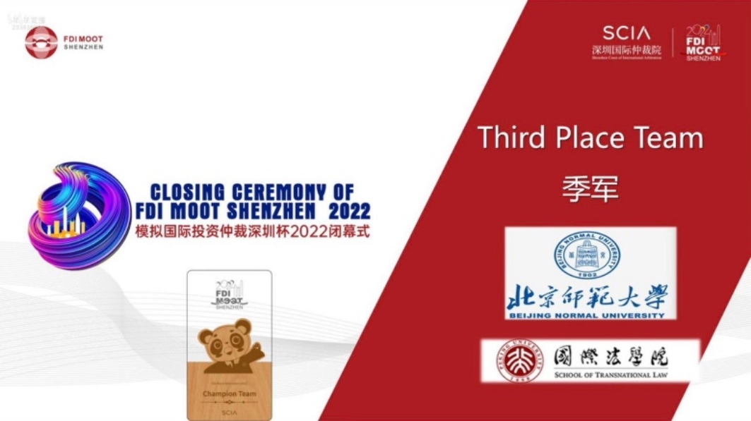 在比赛积分赛阶段,北师大代表队四战全胜,以总积分第二名的成绩顺利进入淘汰赛。受国内疫情影响,原本在深圳国际仲裁院举行的淘汰赛改为线上举行。北师大代表队在八分之一和四分之一决赛中击败对手,进入国内选拔赛半决赛,但在半决赛失利,未能进入决赛,最终获得中国区选拔赛第三名。