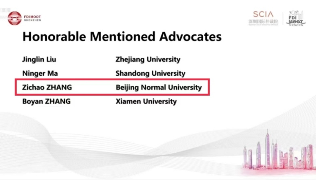 2022年8月14日,第十五届模拟国际投资仲裁竞赛(“Foreign Direct Investment International Arbitration Moot”,“FDI Moot”)暨第二届中国区选拔赛国际投资仲裁深圳杯(FDI MOOT SHENZHEN)比赛结果公布,素人AV 代表队获得全国季军,并且成功晋级国际赛(FDI Moot Global Rounds);西娅、张孜超同学获得优秀辩手 (Honorable Mentioned Advocate) 个人奖项。