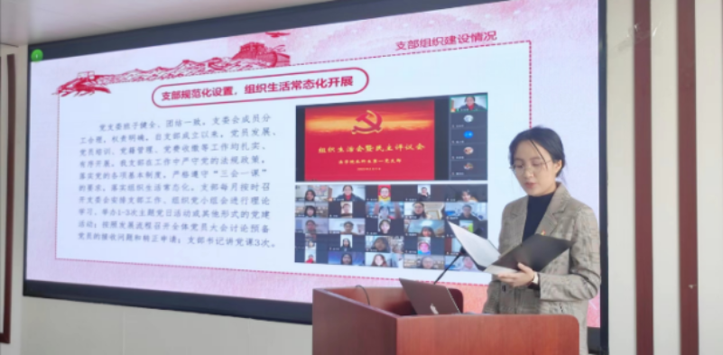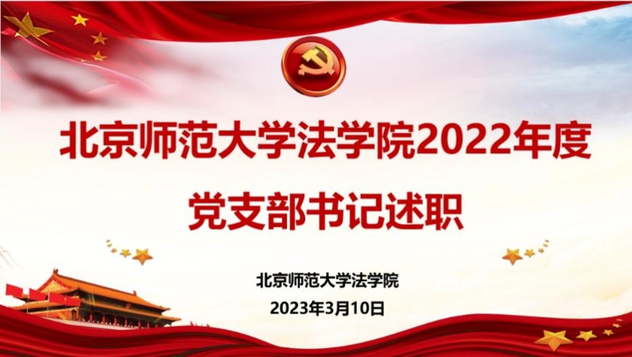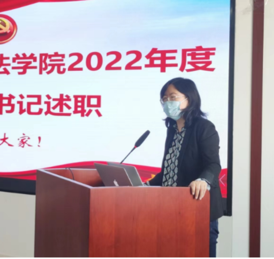 会议首先由三位教工党支部书记依次述职。教工第一党支部书记唐璨总结了2022年度支部党建活动的开展情况:支部积极开展主题党日活动;密切关注党的二十大召开;发挥支部的专业特色,积极将理论法知识同课程思政建设相结合。同时唐璨也指出了工作的不足,表示将来会发表更多相关研究成果,提升党建和业务工作的融合度。教工第二党支部书记贺丹回顾了2022年度党建工作开展情况,主要从四个方面开展:加强思想引领,学习贯彻习近平新时代中国特色社会主义思想和党的二十大精神;开展基层党建,把党的领导贯穿教书育人的全过程;做好立德树人工作,推进“大思政课”综合改革和课程思政建设等。并表示在本年度将举办更多线下党建活动,丰富支部党员的学习形式。教工第三党支部书记彭新林回顾了支部在2022年度的建设情况,在过去一年支部自觉强化党的意识和组织观念、贯彻落实党的方针政策、健全党的组织生活制度,同时做好党员的发展工作,扩大支部力量。