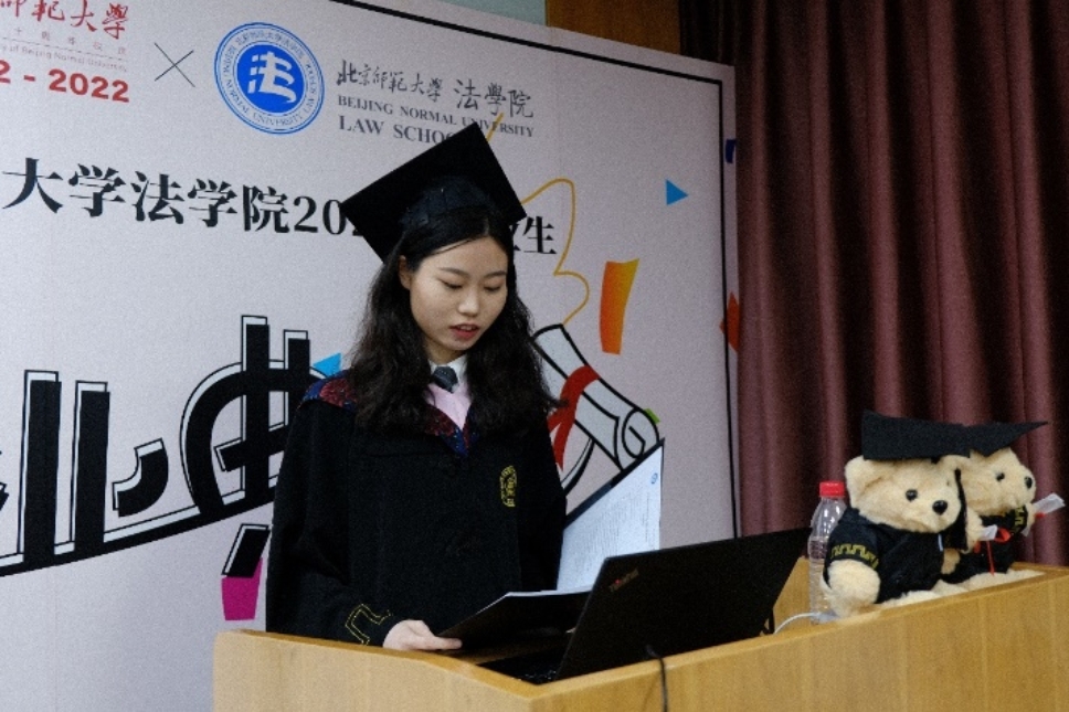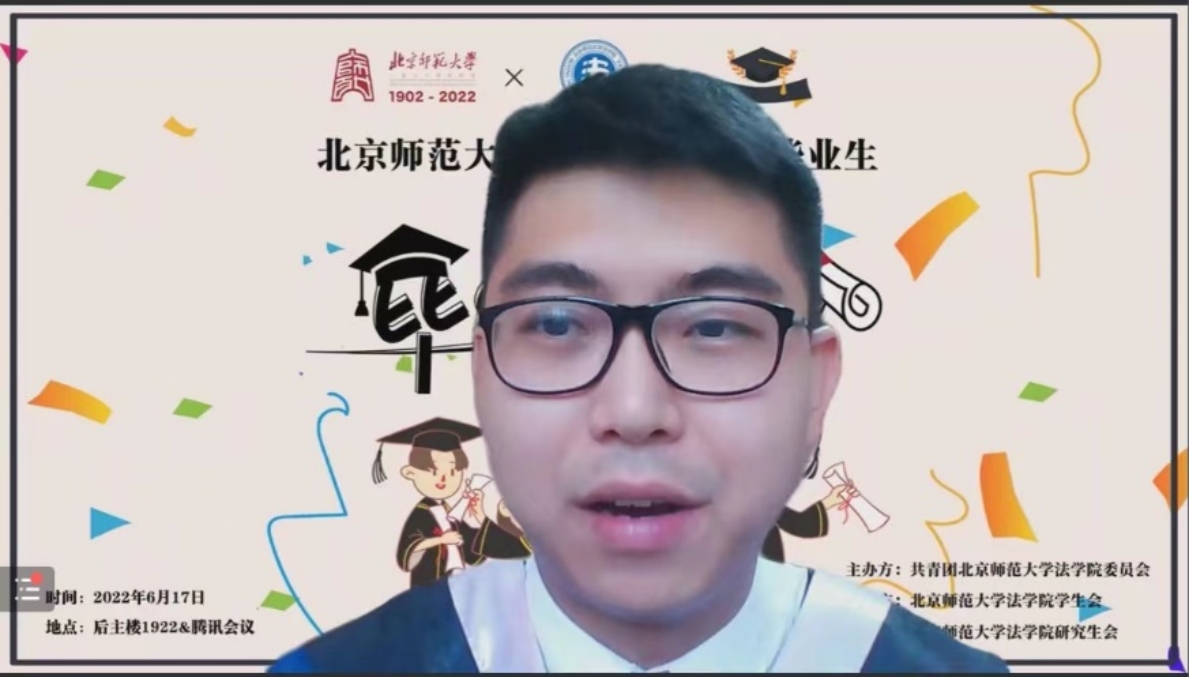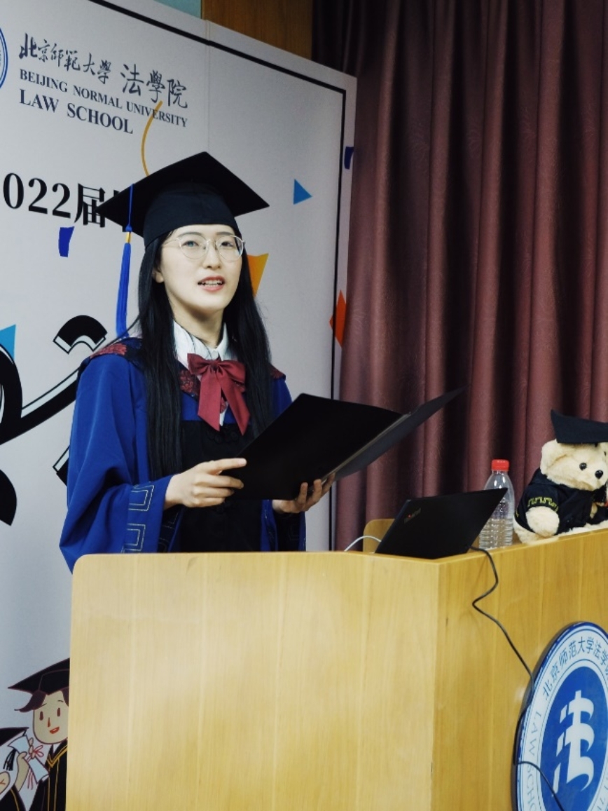 任和和同学回忆并总结了自己在师大的七年里不断尝试、不断学习的过程,对师大素人AV 的包容和支持、师大老师的帮助和指导、师大同学们的信任和理解表达了最诚挚的感激和祝愿。同时,她也鼓励同学们作为法律人应当保持对法律的信仰,为国家和社会努力做出贡献。