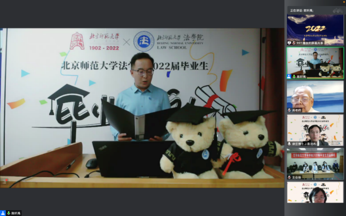 伴随着一帧帧画面,毕业典礼也落下了帷幕。最后将高铭暄教授发言中引用启功先生的一句话送给2022届的毕业生们:“入学初识门庭,毕业非同学成;涉世或始今日,立身却在生平。”