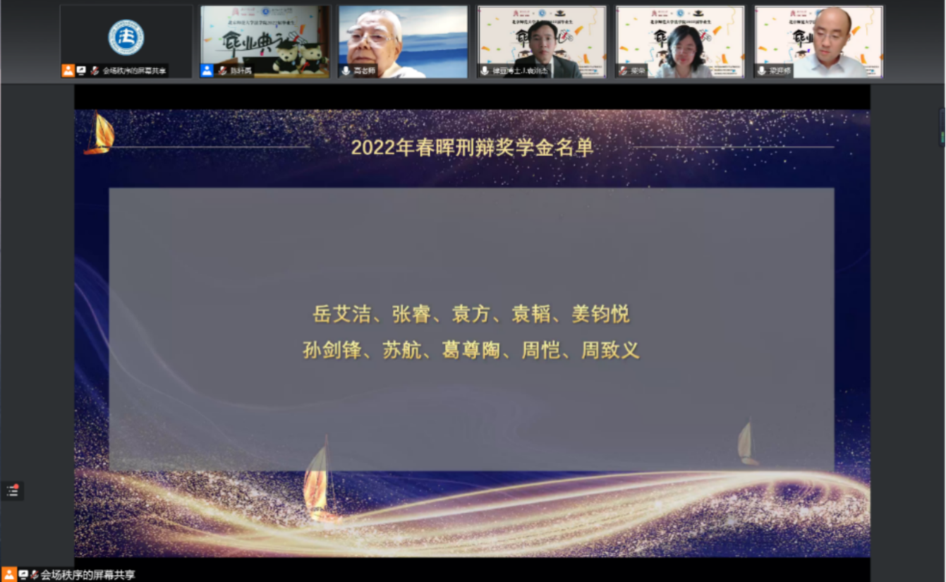 何挺教授宣读了2022年春晖刑辩奖学金获奖名单。