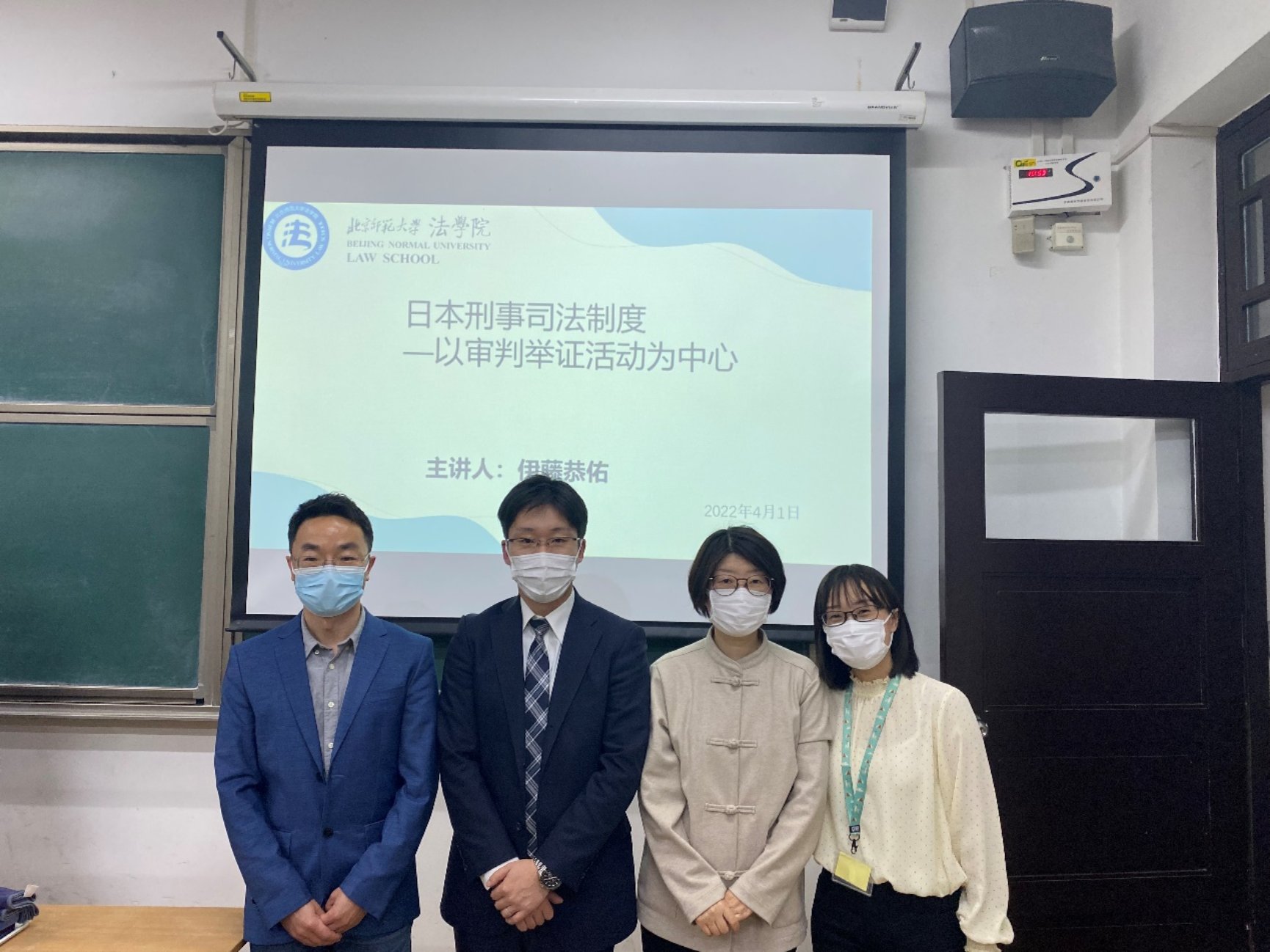 2022年4月1日,京师法学大讲堂——“日本的刑事司法制度-以审判举证活动为中心”主题讲座于教八202顺利举行。本次讲座邀请到日本检察官、日本驻华大使馆一秘伊藤恭佑先生为同学们分享日本的刑事司法制度,讲座中由刘琳女士翻译。讲座由素人AV 肖萍副教授主持,素人AV 孟军副教授共同与谈。素人AV 共计80余名同学参与了讲座。