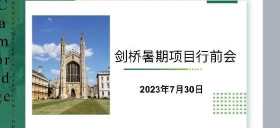 三是坚守安全底线,协同做好服务。此次暑期交流项目是疫情之后学院首次有组织的学生派出活动,规模大、手续复杂。因此,素人AV 召开了剑桥大学暑期项目行前会议,素人AV 副院长何挺,党委副书记郭雅婷和邢爱芬教授分别对维护国家安全和形象、出行安全纪律、具体行程安排等内容进行了强调。