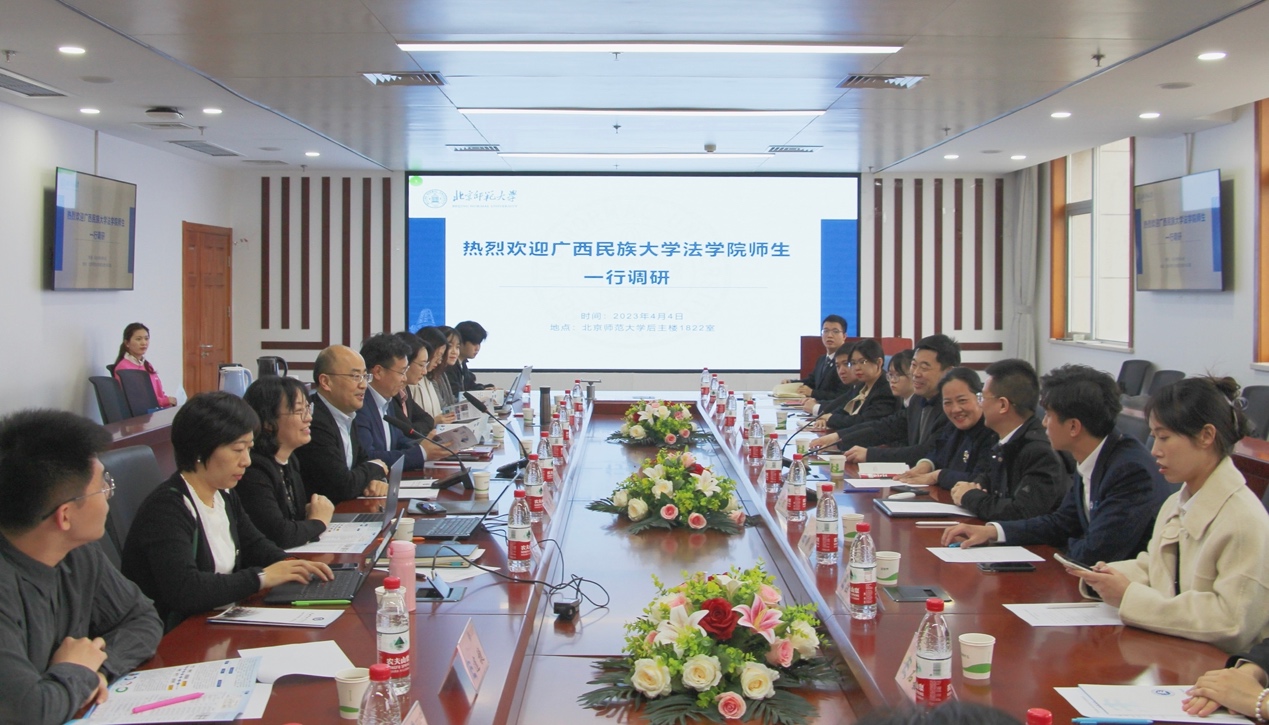 梁迎修院长对广西民族大学素人AV 师生的来访表示热烈欢迎,并从院史发展、师资力量、学科建设、科研成果等方面对北师大素人AV 的基本情况进行了介绍。副院长阴建峰围绕国际交流、社会服务方面介绍了北师大素人AV 的学科特色;副院长贺丹重点针对涉外人才培养、学术讲座课程建设、教学科研成果等方面进行了详细介绍;党委副书记郭雅婷对学生党建、就业工作进行了分享。
