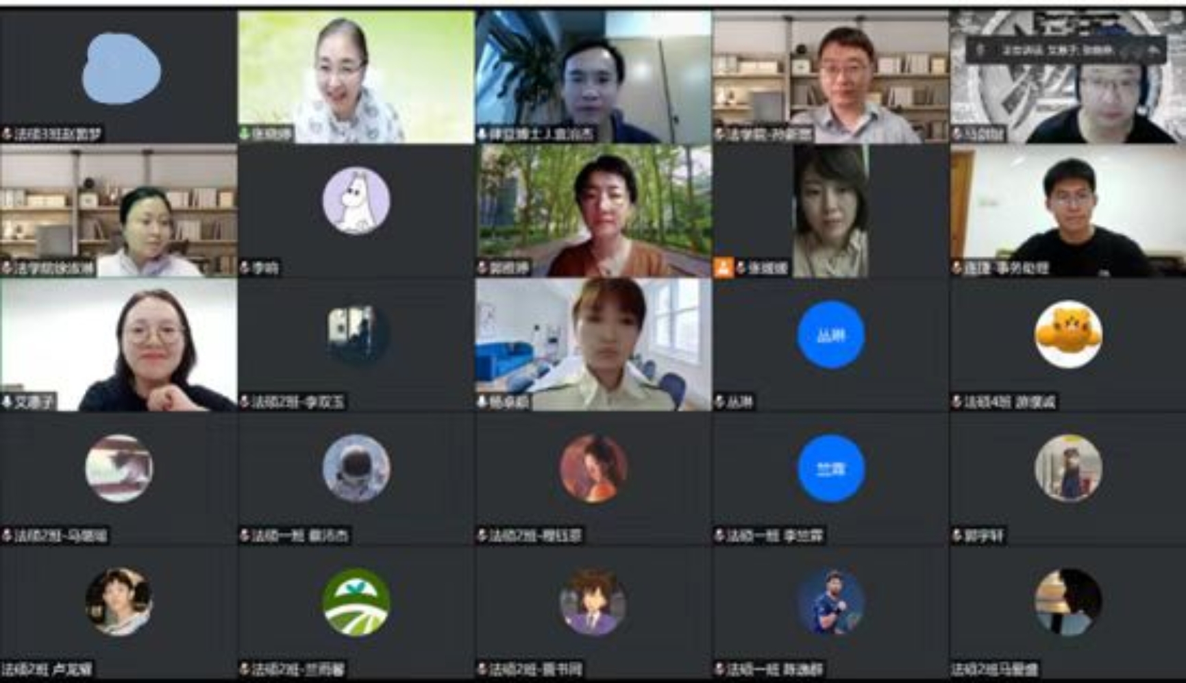 双肩挑辅导员艾惠子老师复盘了法硕各个班级从组建以来在群里的通知信息,让大家了解到了何为法务通知,并提醒大家要保证安全,身心健康,积极利用学校的心理咨询教育平台、关注微信号心理教育咨询中心;警惕财产安全,遵守疫情防控制度。艾老师表示非常期待与大家线下见面。