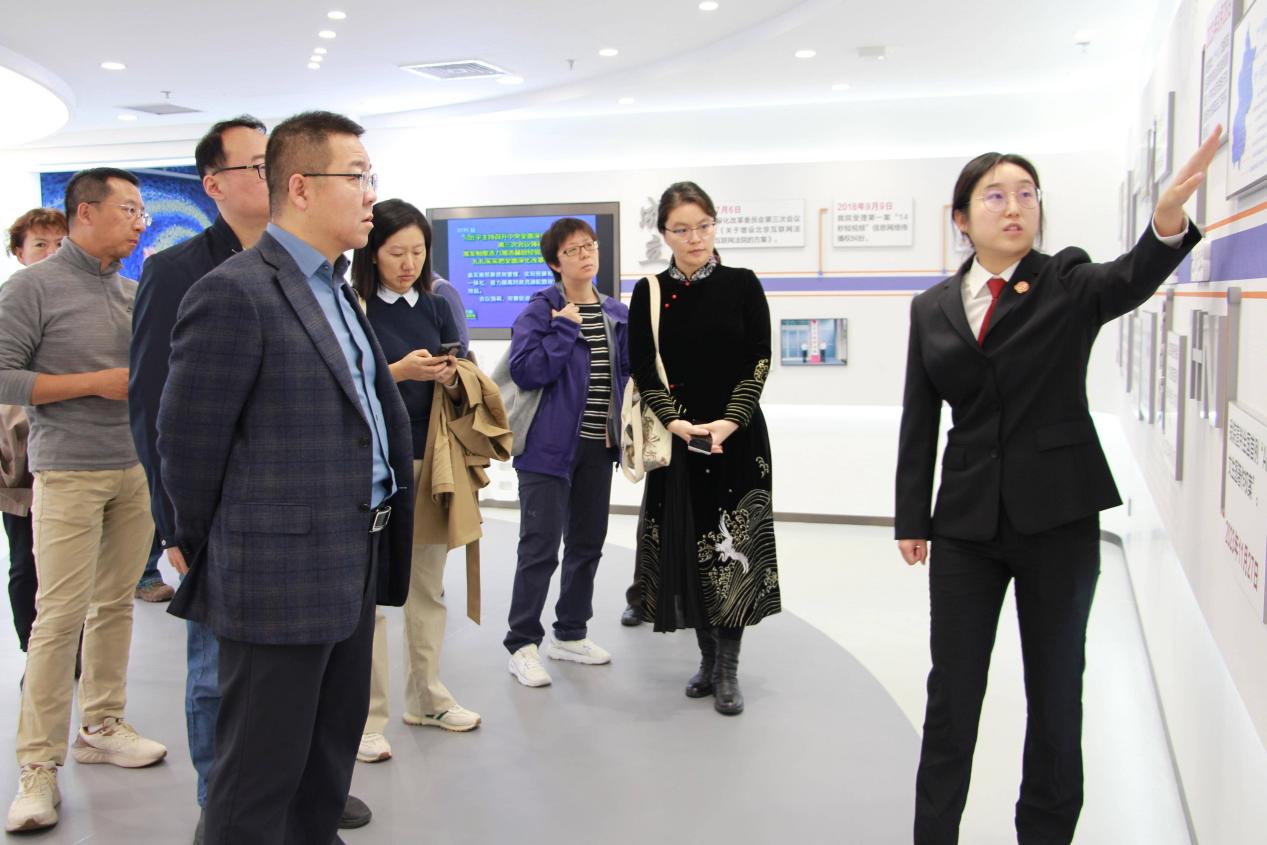 在“智慧司法”主题参观环节,师生通过三维可视化系统观摩“云庭审”现场,实地体验无纸化办案环境。法院干警现场演示“天平链存证平台”操作流程,讲解电子证据溯源验证技术。随后,工作人员引导师生进入党建空间,介绍北京市互联网法院的发展历史、党建成绩,感受科技赋能、党建力量。参观过程中,“首互未来”未成年人网络保护品牌建设成果引发关注,法院创新多方协同机制,通过强化组织机制保障、打造法治宣传阵地、建立特色审理机制等举措构建起未成年人互联网司法保护体系。