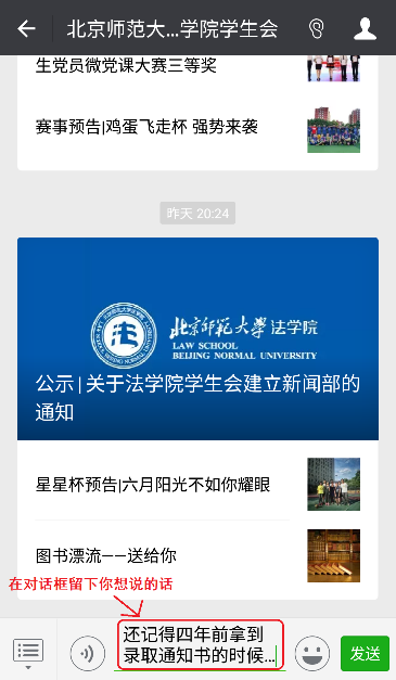 你可以分享你的毕业故事,或者在北师大生活学习经历过的最难忘的事;又或者你可以直接分享学习经验、生活小窍门,以及对师长的感谢,对学弟学妹的寄语……只要你有想说的话,都发给我们吧~