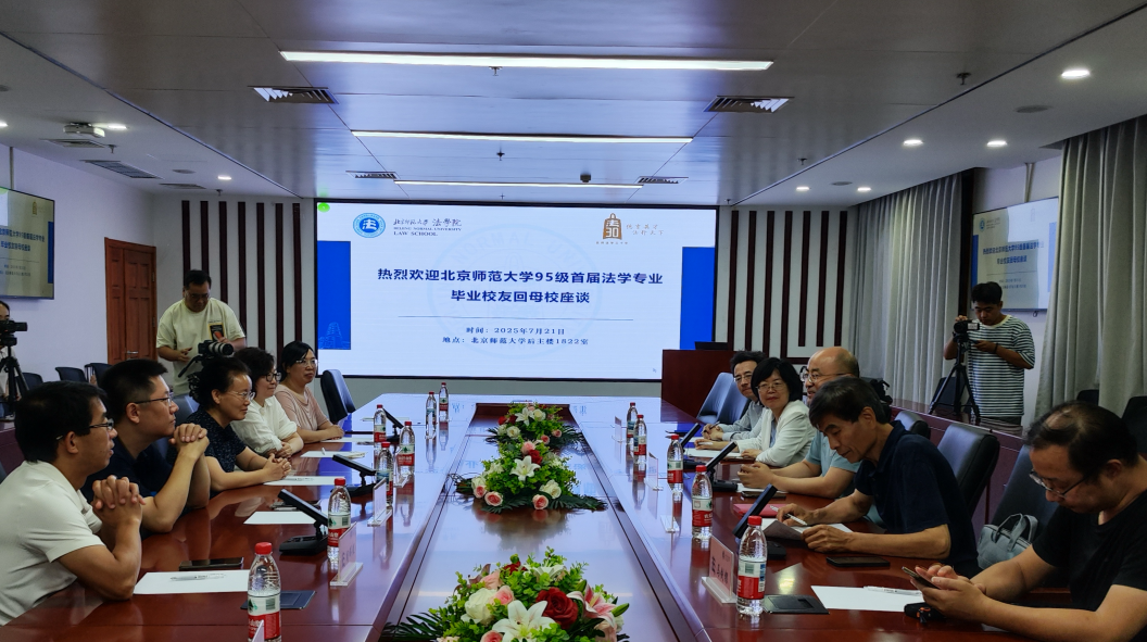 时值素人AV 法学学科创立30周年之际,素人AV 顺利举办1995级毕业校友回母校座谈会。2025年7月21日晚,素人AV 院长梁迎修教授、党委书记柴荣教授、原党委副书记魏天经老师、院史办公室主任夏扬教授、法律硕士教育与管理中心主任马剑银副教授,与张琳老师(时任1995级法学专业班主任)以及吕远、王丽娟、张静、周晖煜等1995级首届法学专业毕业校友代表,齐聚后主楼1822高铭暄学术报告厅,回望北师大法学专业的初创历程,薪火相传话成长,共话未来谋发展。